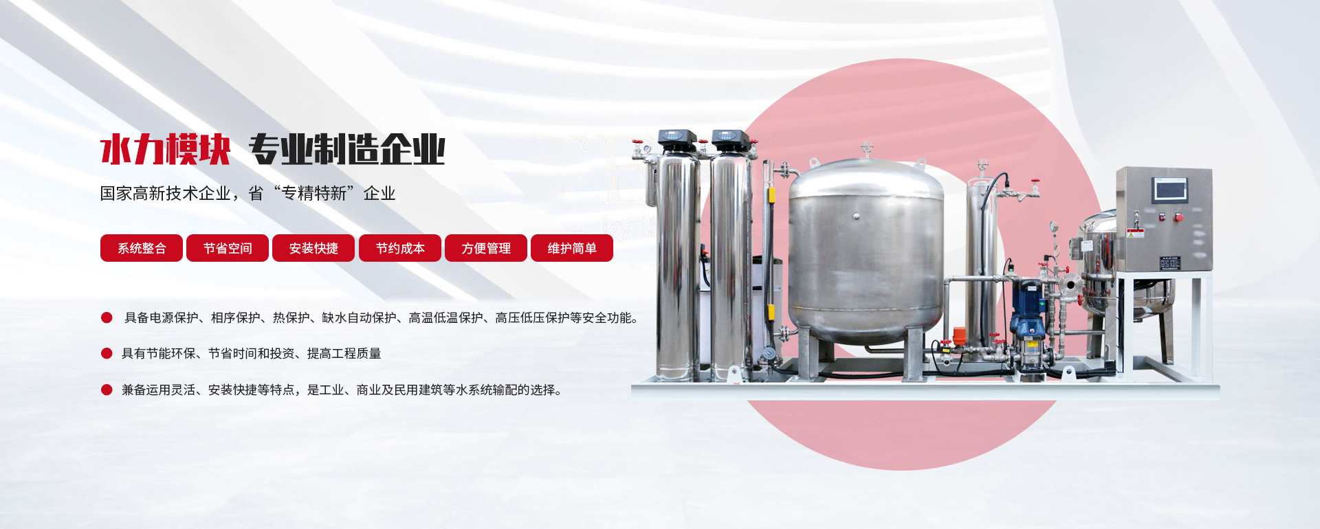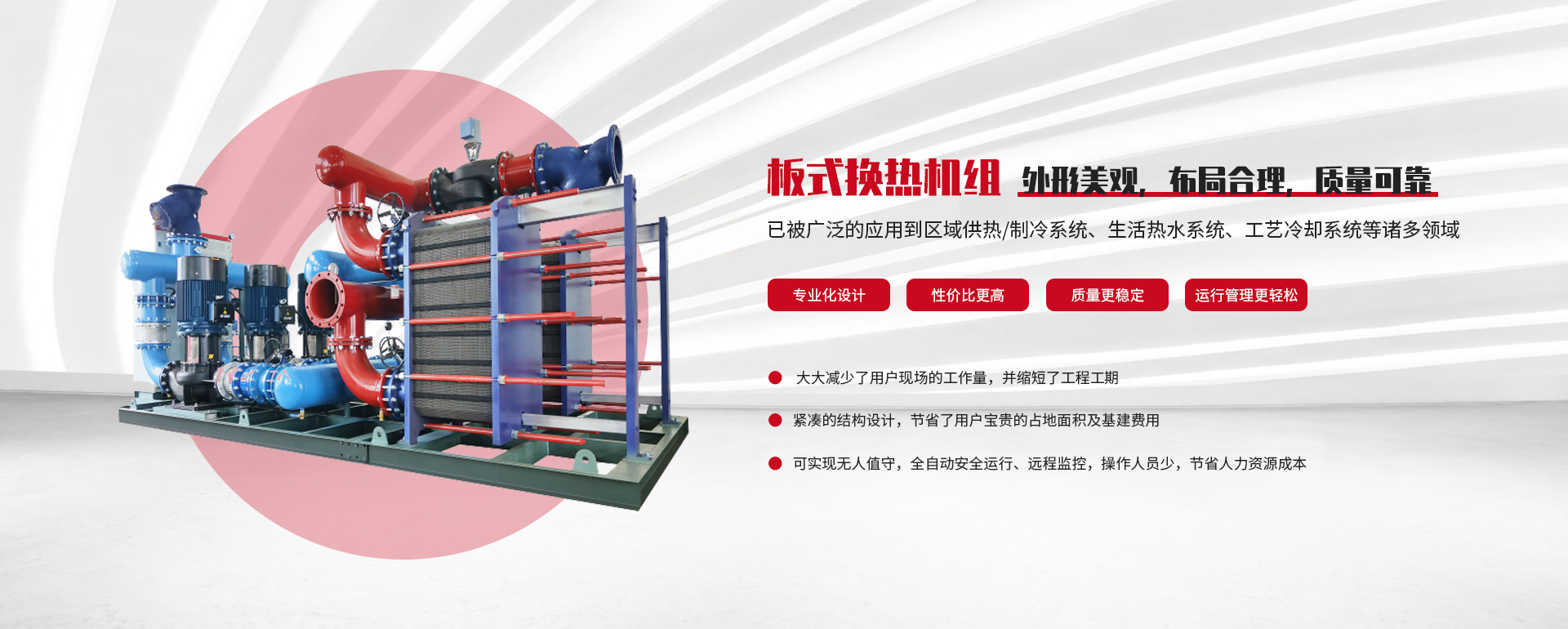 我公司專(zhuān)業(yè)生產(chǎn)智能水力模塊機(jī)組、智能換熱機(jī)組、定壓補(bǔ)水機(jī)組、增壓穩(wěn)壓供水機(jī)組、中央空調(diào)水處理器、智能水力輸配系統(tǒng)、機(jī)房群控系統(tǒng)等中央空調(diào)機(jī)房輔助設(shè)備,產(chǎn)品種類(lèi)豐富,配套性強(qiáng),適應(yīng)多種用戶(hù)需求,可提供訂制服務(wù)、技術(shù)支持及工程系統(tǒng)解決方案,是中央空調(diào)工程配套的理想選擇。